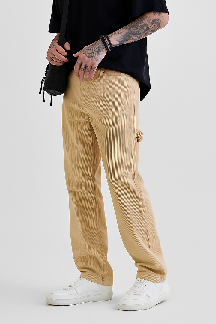 Step up your casual wardrobe with these classic beige corduroy pants, designed for comfort and timeless style. Crafted from premium corduroy fabric, they feature a soft, textured finish that adds depth and character to your fit. The relaxed straight-leg cut gives you room to move while keeping a structured silhouette.