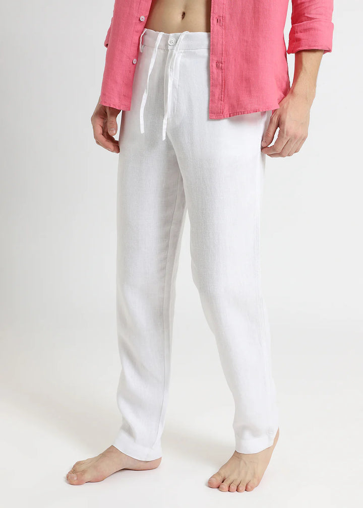 Meet the pants that do everything — breezy, bold, and effortlessly elevated. Made from 100% pure linen, these white trousers are designed to breathe easy and move with you, whether you’re chasing the sun or shutting down the city.